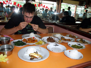 Surprise!!! "Traffic jam"... 3h pour rejoindre le centre ville au lieux des 1h30 du matin. Klaxon, Pots d’échappements, incivilités routières, sifflets des "régulateurs de circulation". Le bruit est omniprésents et nous attrapons des maux de tête à chaque passage en ville dans cette fourmilière de véhicules. Sur les conseils avertis d'Annisah, une des étudiantes, nous dinons dans une bicoque en bord de route ou plutôt sur le trottoir qui n'en porte que le nom. Ils sont utilisés pour les "restaurants" de rues ou en parkings. Pendant le repas des jeunes chanteurs accompagnés de ukulélé passent entre les tables. Moins charmant(es), des transsexuels équipés de microphones de mauvaises qualités et volume à fond, chantent ou font semblant de chanter et ne partent pas avant que quelqu'un ai bien voulu leur donner un peu d'argent. En fait de tolérance pour ces personnes, nous comprenons que les Indonésiens sont effrayés et qu'ils préfèrent payer pour les faire partir que de devoir supporter leur présence.